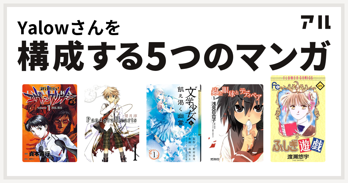 Yalowさんを構成するマンガは新世紀エヴァンゲリオン Pandorahearts 文学少女 と飢え渇く幽霊 蟲と眼球とテディベア ふしぎ遊戯 私を構成する5つのマンガ アル